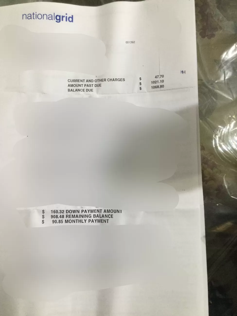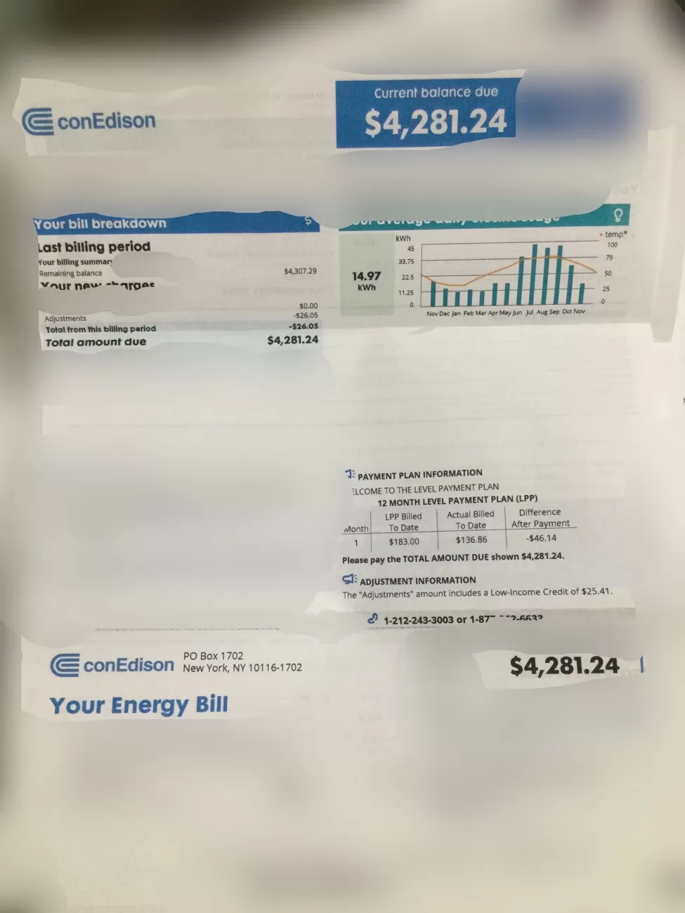 They got a few shut off notices from National Grid and Con Edison, and they do not have any money.