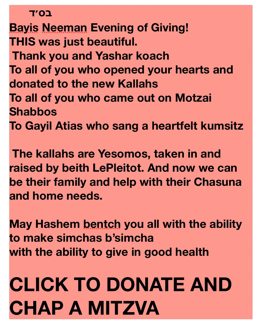 Help orphan Kallahs set up a home B’Yisrael !