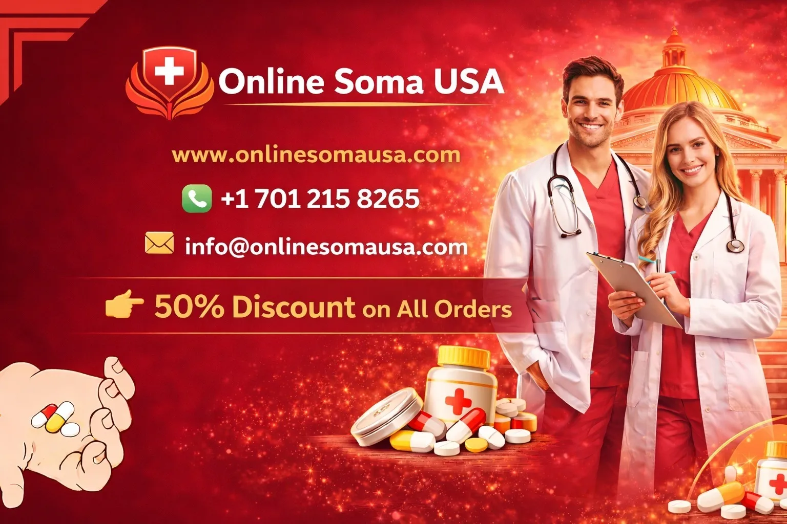 Don’t wait! Take advantage of our Big up to 40% discount and buy Soma online from the trusted platform, Online Soma USA. Get fast, safe, and reliable delivery right to your doorstep.
