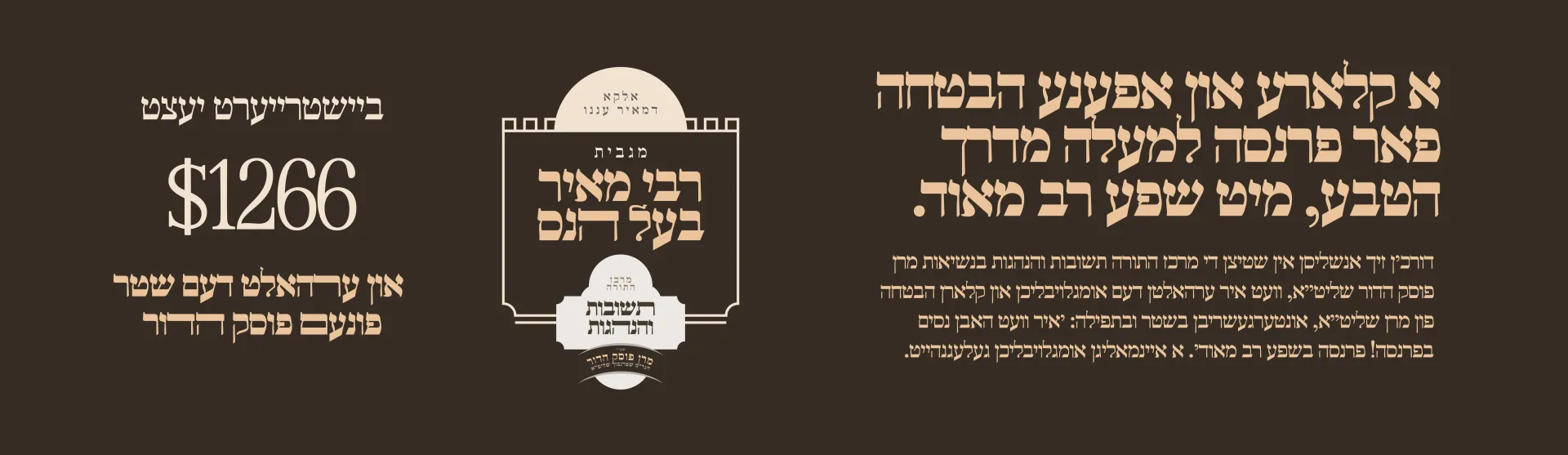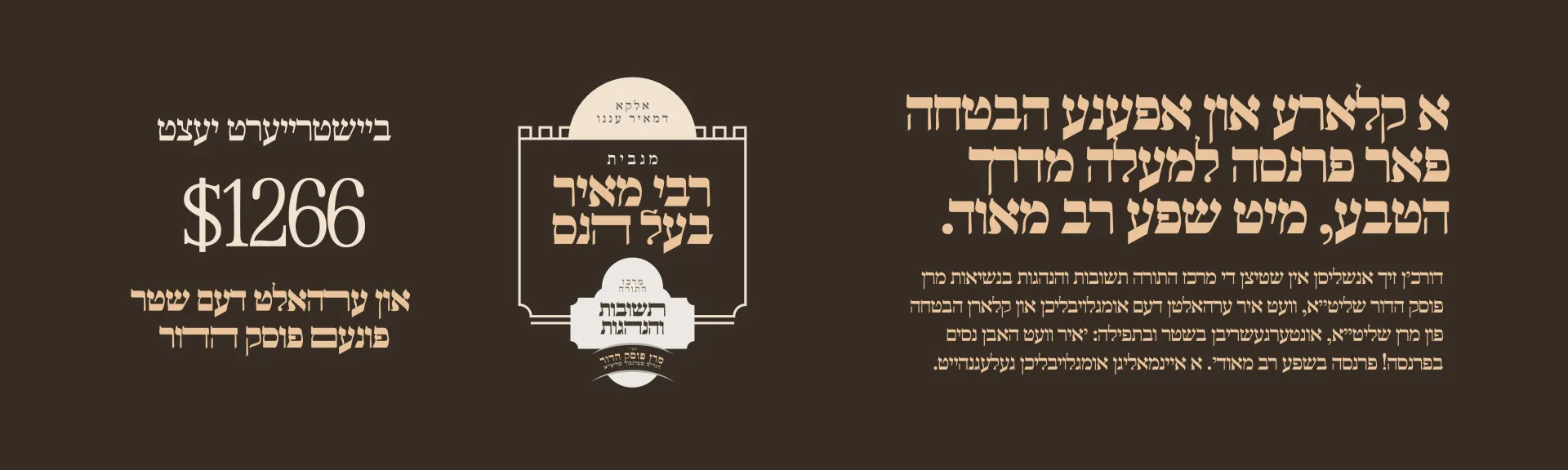 $1,300.00יחזקי׳ מנחם מאניש בן לאה רחל בת חי׳ רבקה ב׳ בנימין ב׳ שרה ב׳ חיים אברהם ב׳ צבי להצלחה בכל ענינים