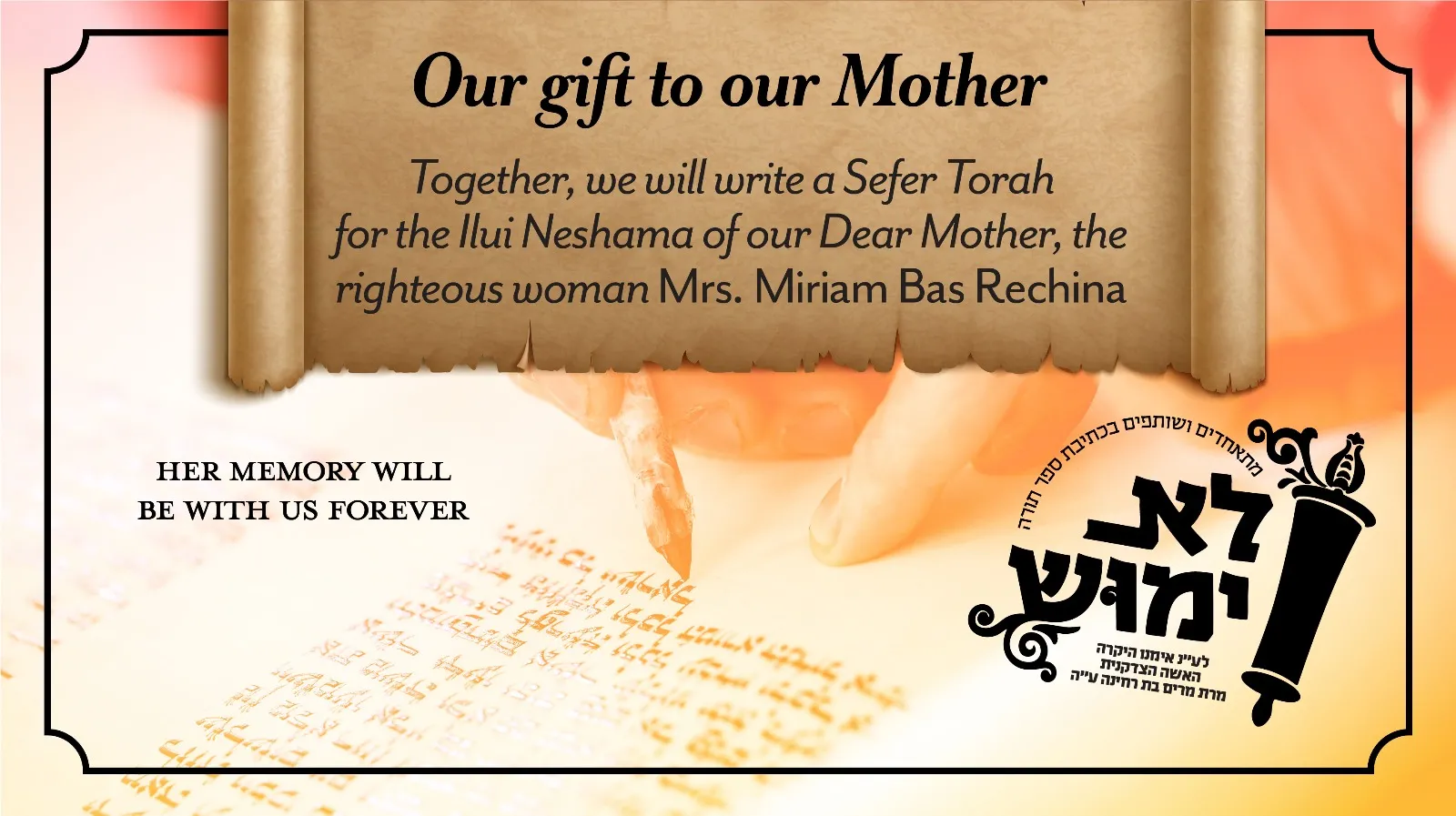 Now, R’ Shimon and his Family seeks to find comfort and connection by dedicating a Sefer Torah in her memory — a lasting legacy of Torah, love, and faith.